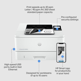 HP LaserJet Pro 4003dn Printer -Duplex, Ethernet port, Print: up to 42 ppm black, Hi-Speed USB 2.0, White- (2Z609A)